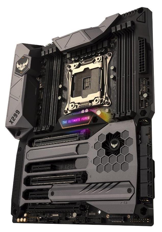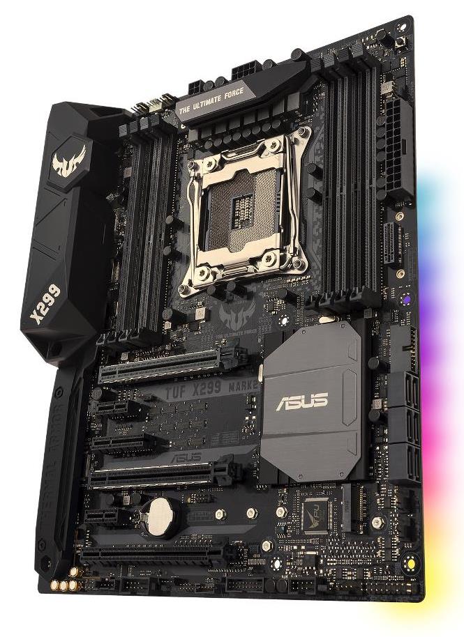 Основной акцент при разработке плат серии TUF был сделан на надежность и долговечность устройств, благодаря использованию износоустойчивых компонентов и усиленной защитной конструкции. TUF X299 Mark 1 и TUF X299 Mark 2 отличаются особым оформлением в космическом стиле. В остальном модели схожи с другими новинками компании Asus.