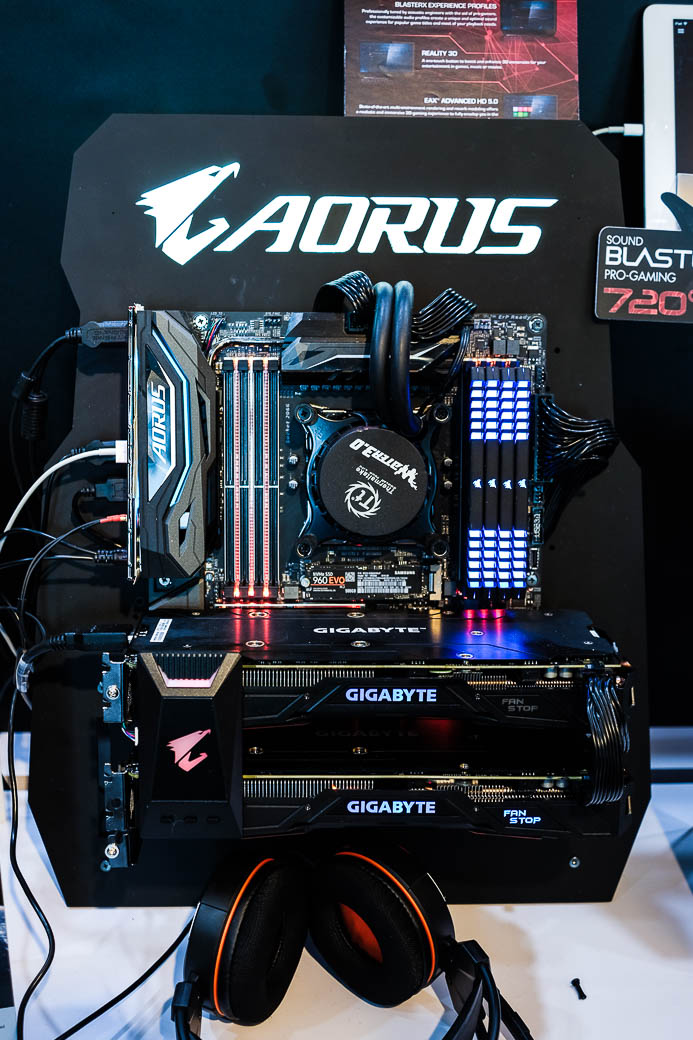 Компания Gigabyte сегодня ограничилась презентацией только новых материнских плат, разработанных в сотрудничестве с AORUS. Они базируются на новом чипсете Intel X299 и выполнены в строгом дизайне с использованием светящихся элементов.