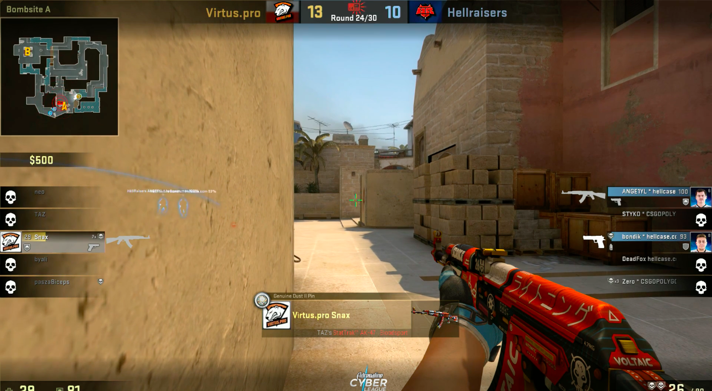 Второй матч полуфинала подарил зрителям игру в исполнении Virtus Pro и Hellraisers. Первой картой стала Cache, где поляки почти смогли выиграть карту, дойдя до счета в 13 очков против 15 у HR, но крайне зрелищное тройное убийство после выхода из дыма на шестнадцатом раунде от bondik поставило точку в этой игре.