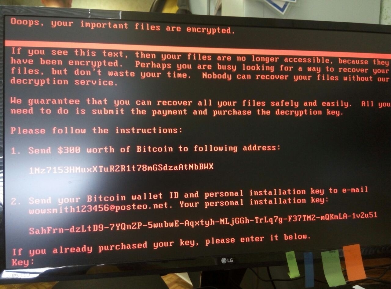 Как рассказал один из сотрудников компании, компьютеры стали внезапно перезагружаться, после чего появилась «красная надпись про биткоин и деньги». В компании распорядились отключить все компьютеры до конца дня.