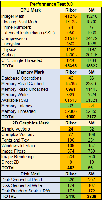 При тестировании использовались утилиты PerformanceTest 9.0, CINEBENCH R15 и 7ZIP. Для сравнения, энтузиасты собрали две аналогичные платформы на базе Rikor