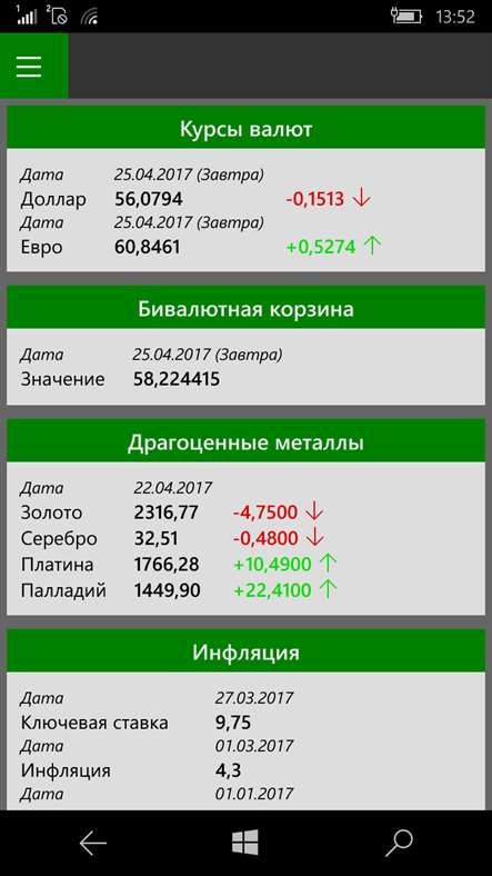 Программа предоставляет доступ к сервисам ЦБ РФ. Курсы валют, цены на драгоценные металлы, ставки межбанковского кредитного рынка и множество других данных.