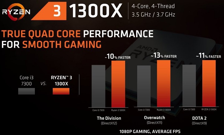 Рекомендованная стоимость процессора Ryzen 3 1300X составляет $130, а его младшая версия Ryzen 3 1200 оценена в $110.