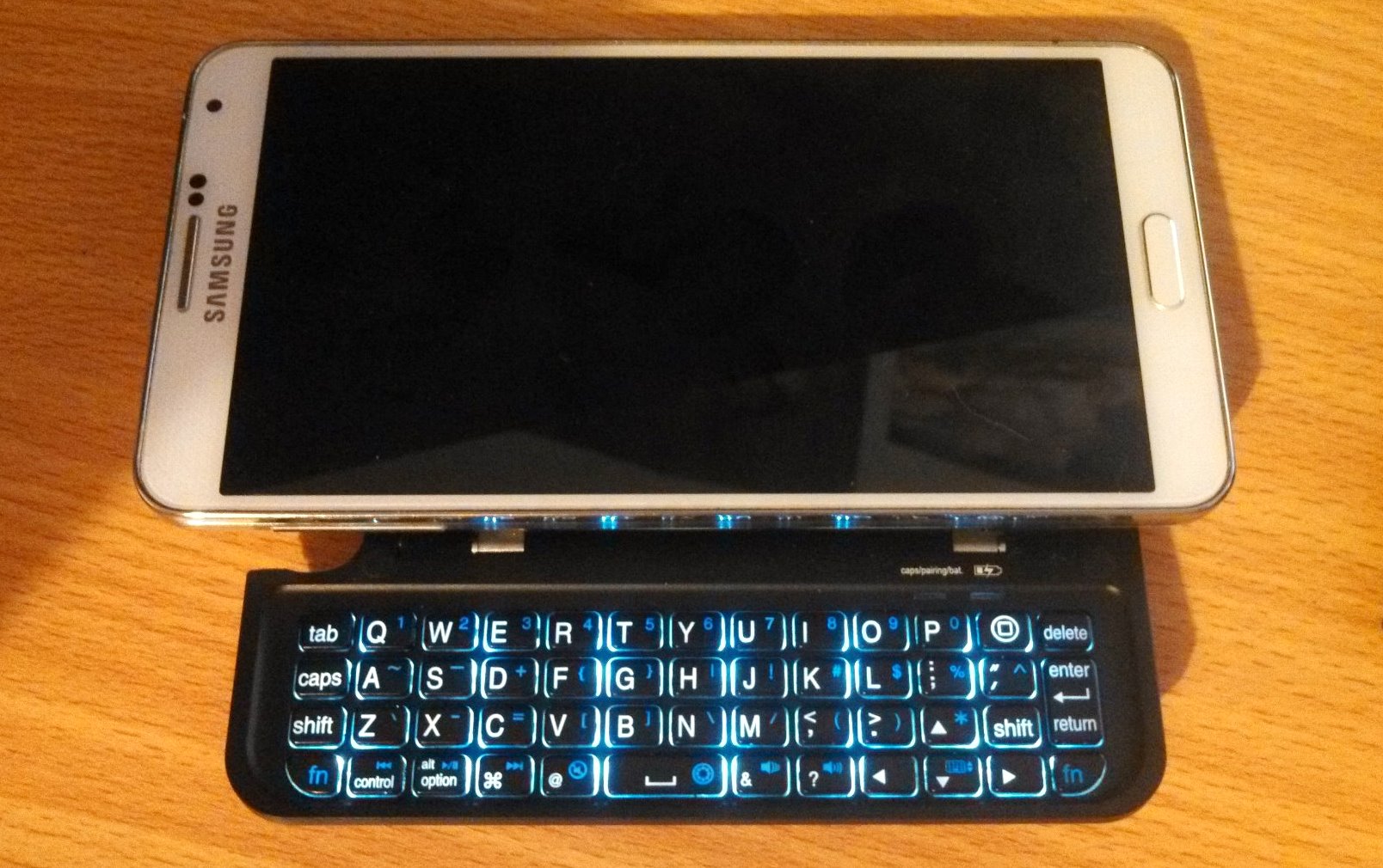 Недолго думая, Linkandzelda взял фаблет Galaxy Note 3 и прикрепил к нему клавиатуру от Motorola Photon Q. Получилось, возможно, местами не очень красиво и по современным меркам слишком габаритно — вес устройства составил 233 г, а о его толщине можно судить по фотографиям. В результате вышел рабочий смартфон-трансформер с физической QWERTY-клавиатурой, Alt, Ctrl и прочими функциональными кнопками.