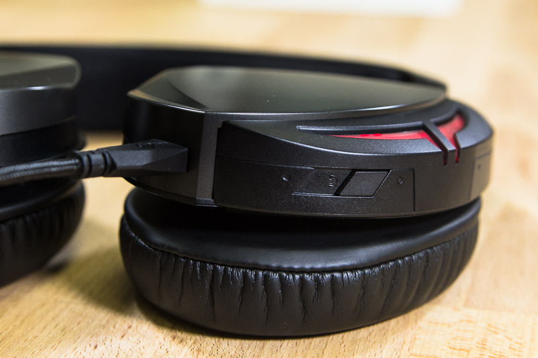 С обратной от микрофона стороны расположена единственная клавиша с индикатором, которая активирует виртуальное звучание 7.1. Разъемы разнесены по чашкам: microUSB — слева, а jack 3,5 мм — справа.