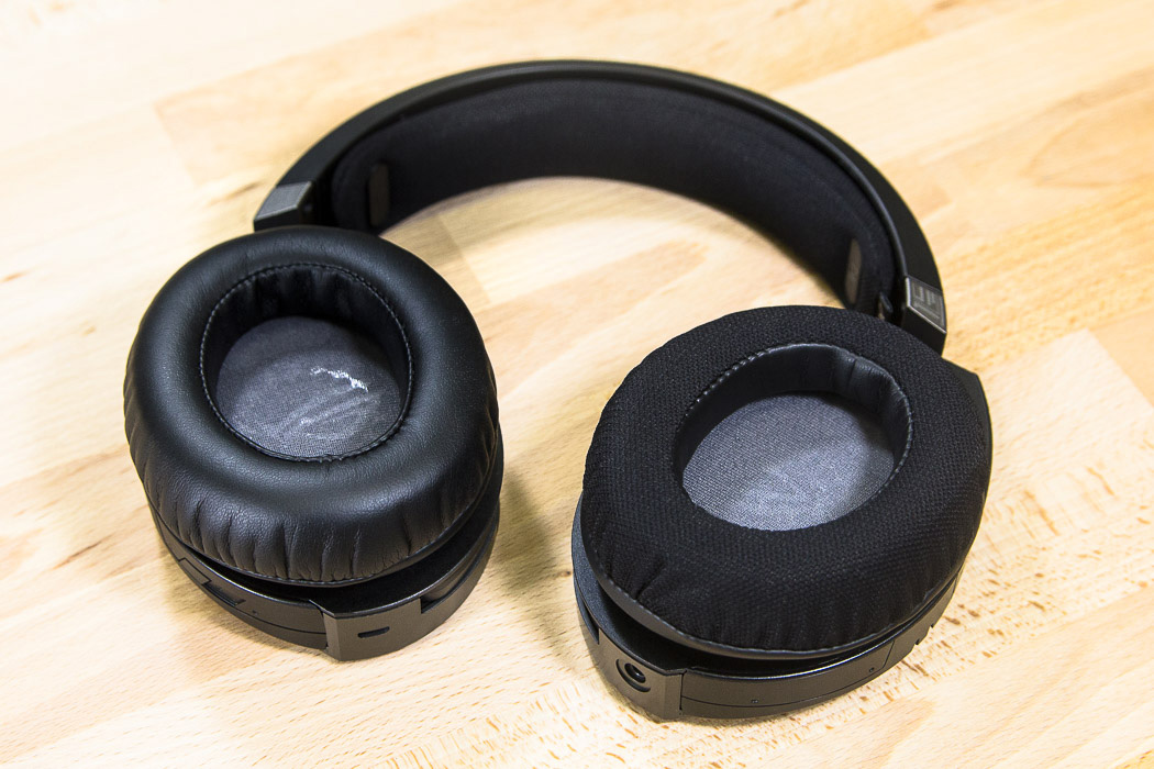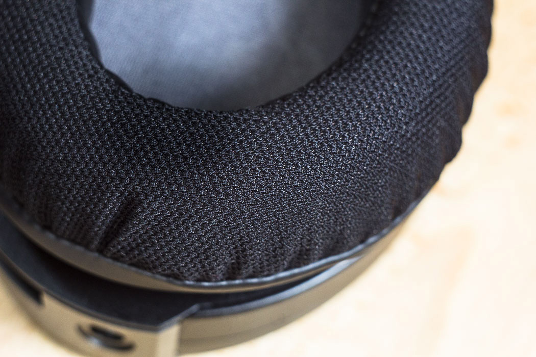 По умолчанию установлены амбушюры из кожзама, но также в комплект поставки входят тканевые, которые оптимально подойдут для многочасового гейминга.
