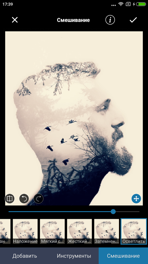LightX — простой фоторедактор, который совмещает в себе все необходимые инструменты для современного пользователя Instagram*. Помимо стандартных функций кадрирования фотографий, наложения фильтров и добавления подписей, в этом приложении есть возможность комбинировать несколько фотографий в режиме двойной экспозиции, изменять цвет волос с помощью технологий искусственного интеллекта, применять портретное ретуширование, создавать коллажи и добавлять маски со стикерами. Несмотря на богатый функционал, интерфейс в LightX — не перегружен.