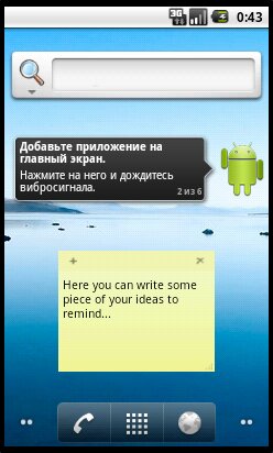 - не висит в процессах (главное активити редактирования заметки убивается программно) Для того, чтобы быстро написать текст на стикере тапните по виджету и введите текст. Поддерживается пока только одна заметка.