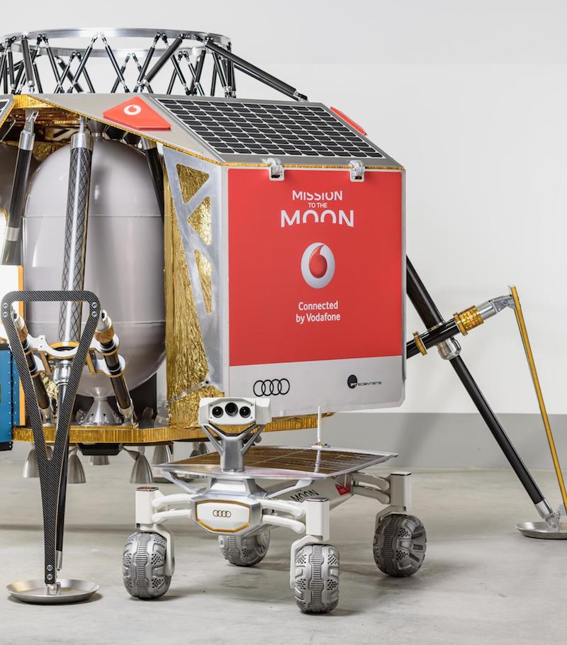 Для этой цели на Луну будет доставлена базовая станция Vodafone, именно её и разрабатывают вместе с Nokia. Станция будет собирать информацию с роверов Audi, после чего отправлять по LTE-соединению на сервер PTScientists в Берлин, а уже оттуда фотографии и прямое вещание будет распространятся по интернету на Земле. Автономный модуль, собирающий информацию с роверов-разведчиков, получил название ALINA и работать он будет на частоте 1800 МГЦ.