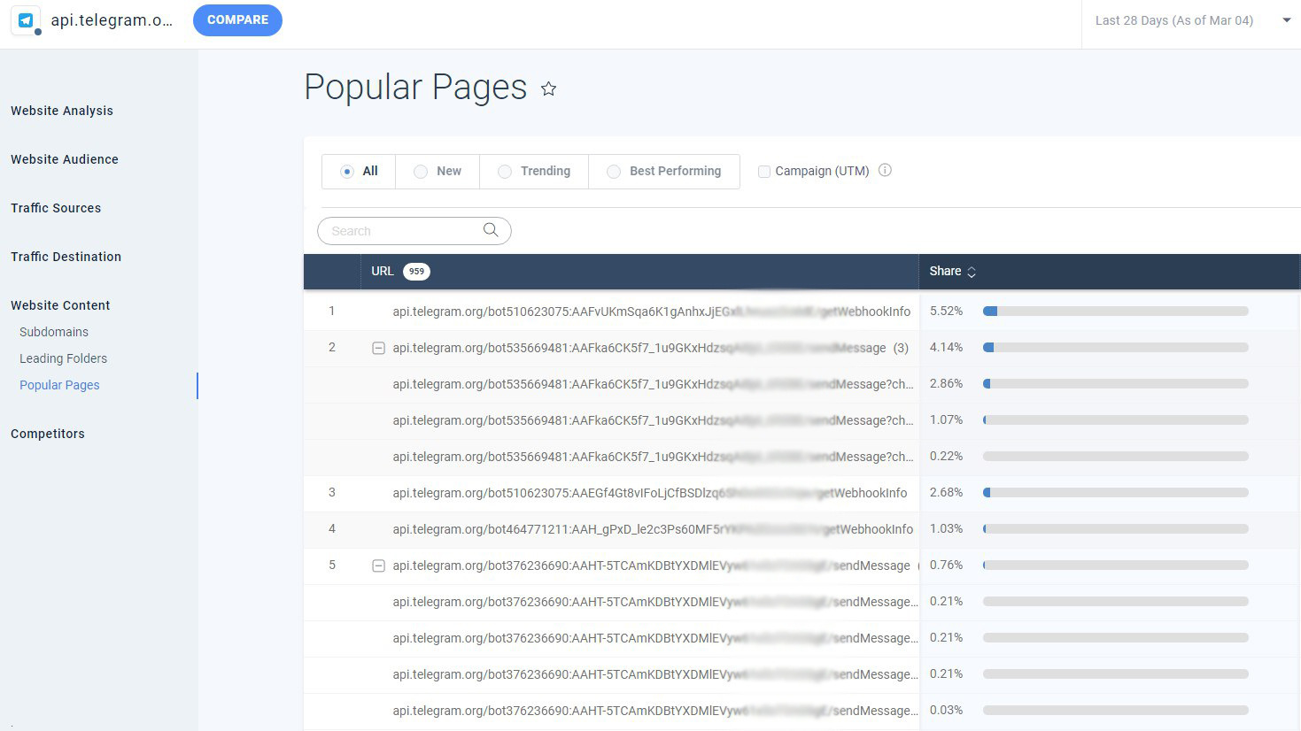 По словам одного CEO-разработчика под ником Yoga2016, такое возможно осуществить через сервис веб-аналитики SimilarWeb, платные инструменты которого открывают пользователям доступ к 300 самым популярным материалам любого сайта для анализа его посещаемости.