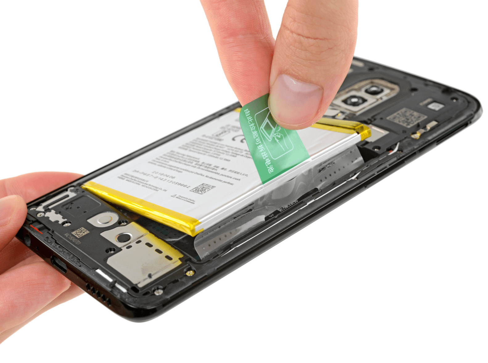 При разборке устройства, сотрудники iFixit столкнулись с необычным решением производителя: хоть аккумулятор является несъёмным и на нём об этом написано, к одному из его граней прикреплена специальная лента для удобного извлечения (за неё необходимо потянуть). Батарея держится на небольшом объёме клея, благодаря чему процесс вытаскивания аккумулятора крайне прост. OnePlus использует стандартные крепёжные элементы, инструменты для которых есть в любой мастерской. Практически все компоненты смартфона являются модульными и, следовательно, легко заменяемыми.