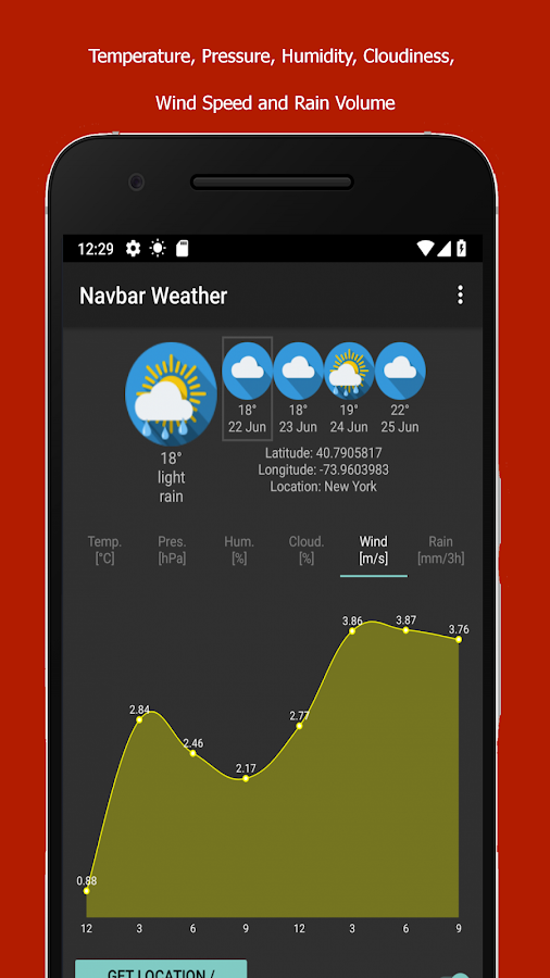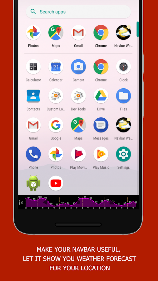 Navbar Weather может выводить вместо диаграммы прогнозируемой температуры график изменения скорости ветра, а также значение давления, влажности, осадков и прочего. В Google Play уже есть подобные программы, однако они выводят прогноз погоды в статус-бар. Он меньше навигационной панели и часто скрывается приложениями.