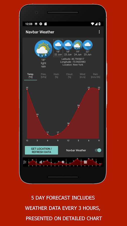 Navbar Weather для Android показывает прогноз погоды в навигационной панели