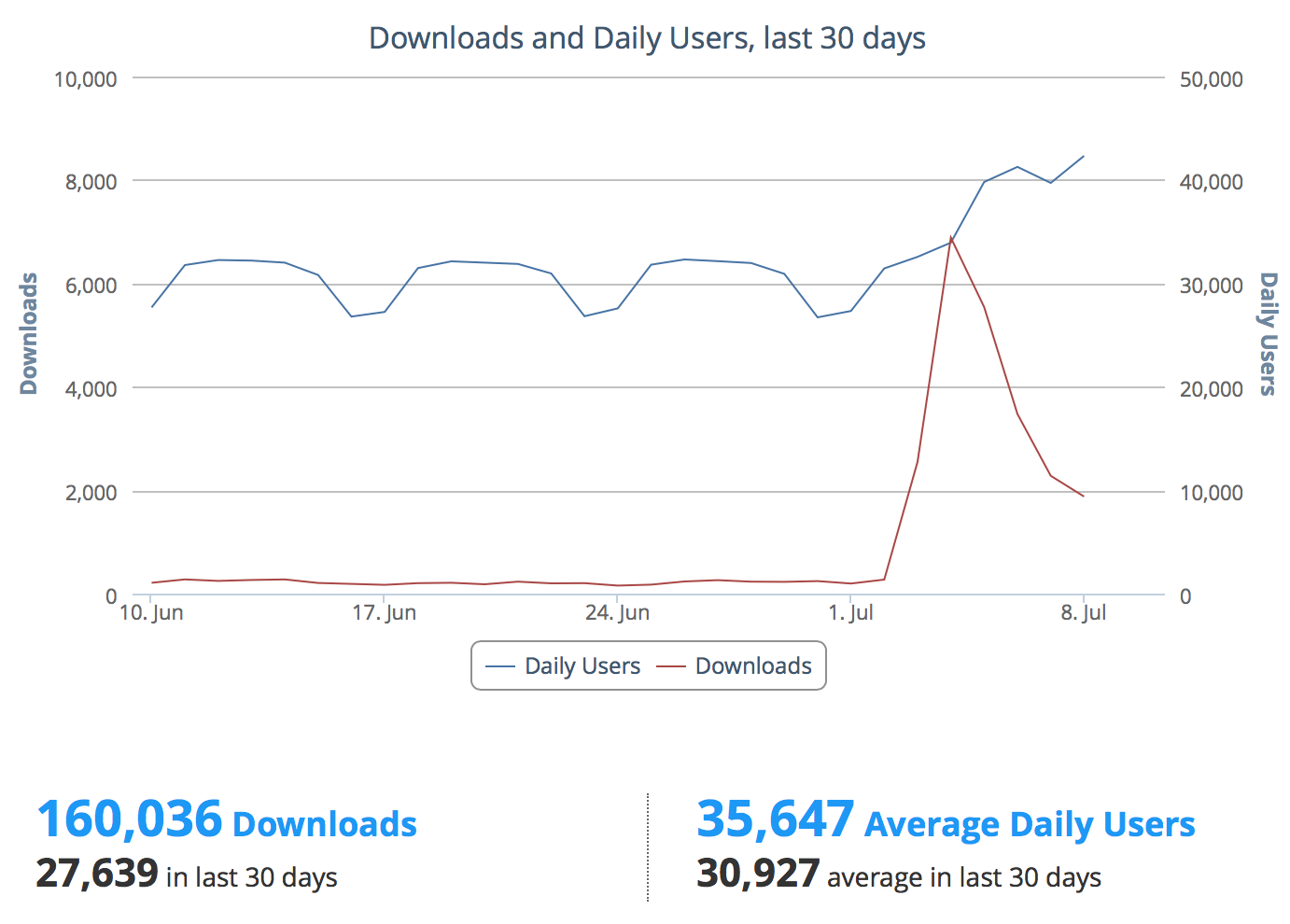 Судя по статистике каталога расширений Firefox, пик загрузок Stylus пришёлся на 4 июля — вскоре после того, как Stylish уличили в сборе конфиденциальной информации пользователей. Исходя их статистики, почти 15% всех загрузок Stylus были осуществлены за последние 7 дней, а число пользователей из браузера Firefox впервые превысило отметку в 40 тыс.