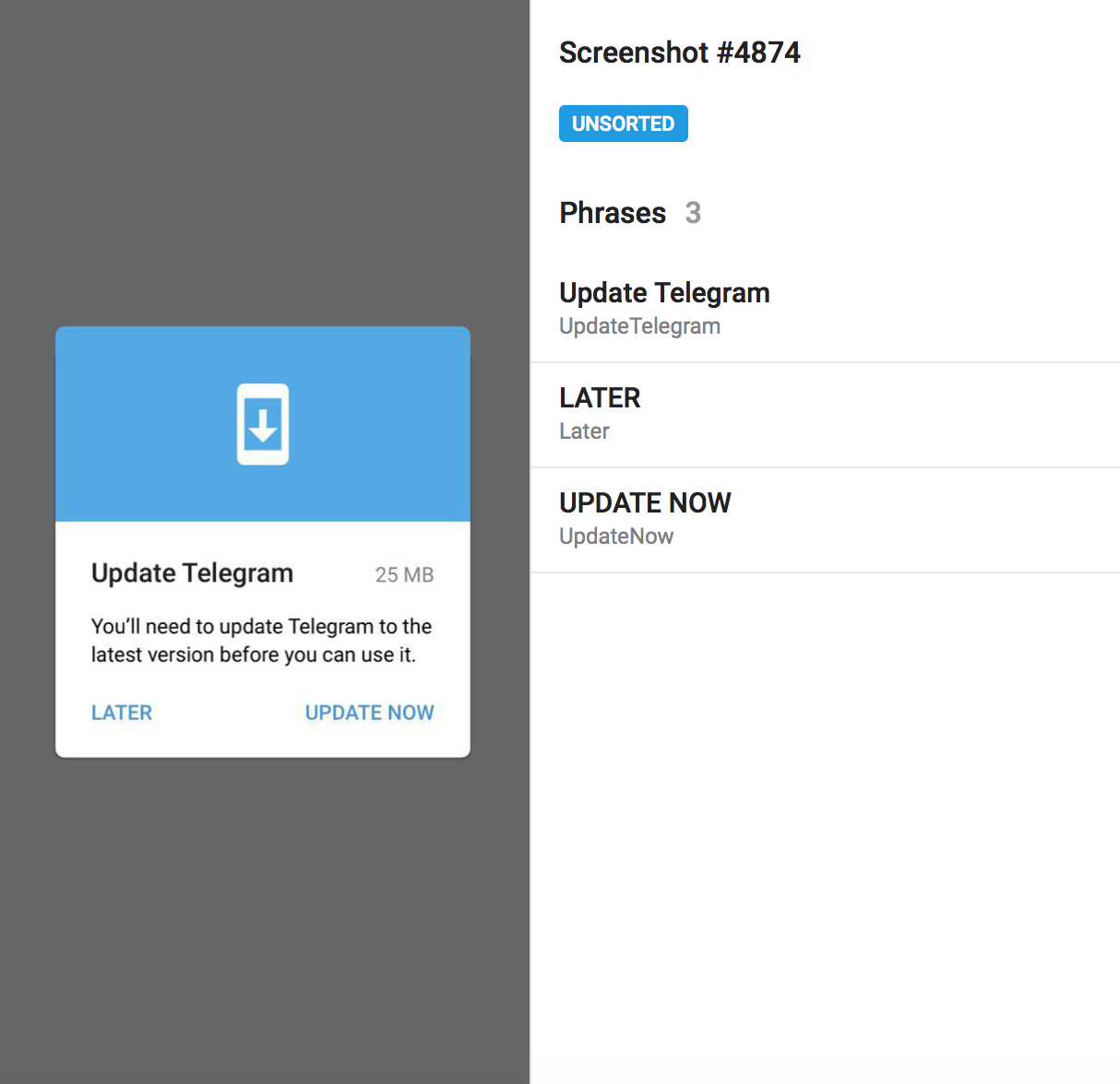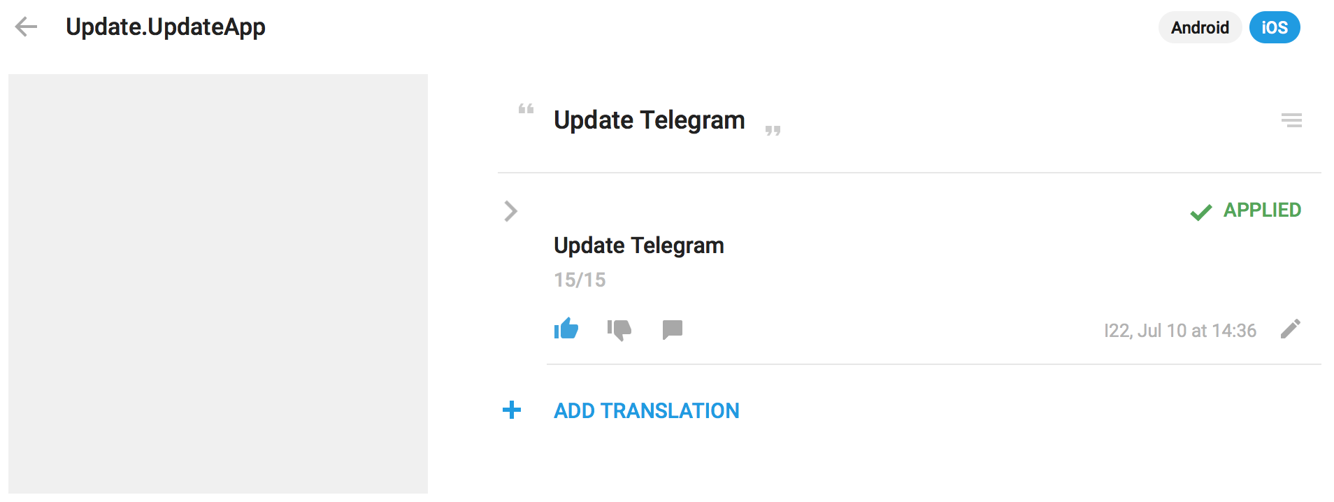 На платформе для переводов Telegram опубликованы новые записи, свидетельствующие о появлении возможности обновлять мобильные клиенты мессенджера в обход App Store и Google Play. Данная функция пока что не анонсирована, но официальную платформу для переводов можно считать достоверным источником.