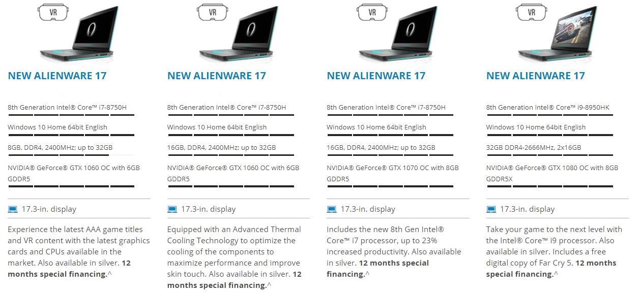 Стоимость Alienware 15 R4 и Alienware 17 R5 в России составляет от 119 990 рублей.