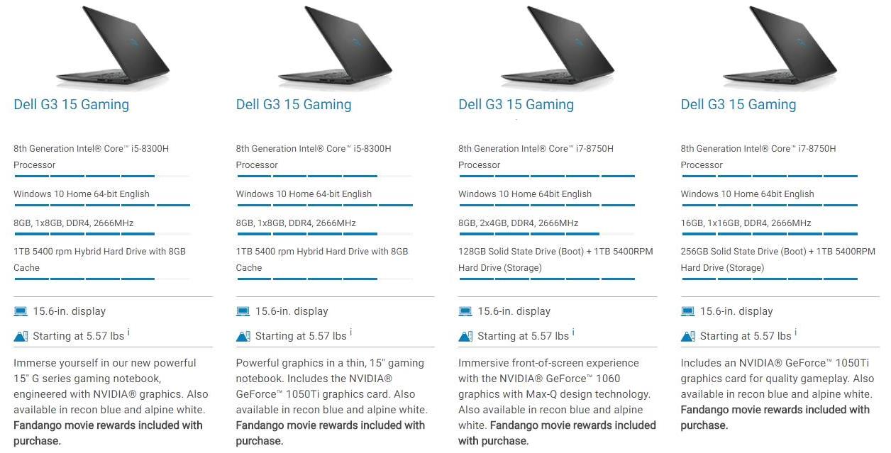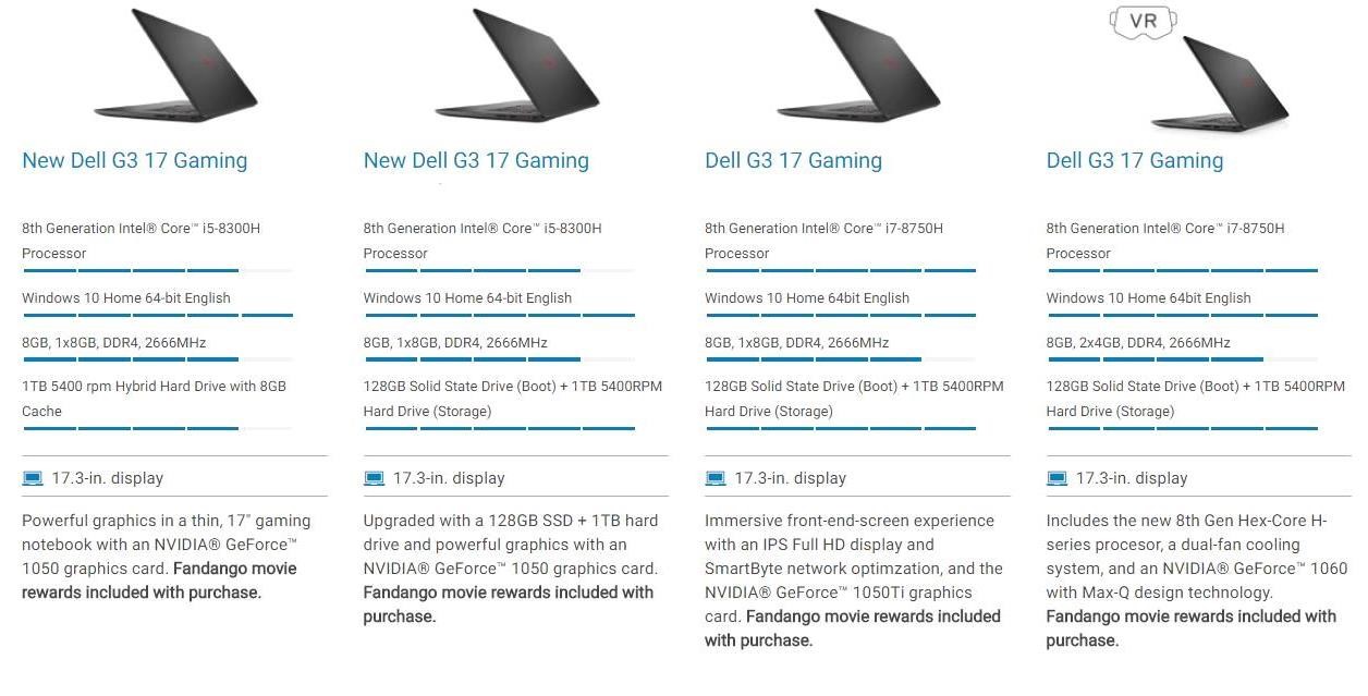 Новая линейка доступных игровых ноутбуков представлена тремя моделями: Dell G3 15, Dell G3 17 и Dell G5 15. Все они оснащены мощными графическими адаптерами GeForce GTX 10-Series, процессорами Intel Core 8-го поколения и различными технологиями, которые по достоинству оценят геймеры.