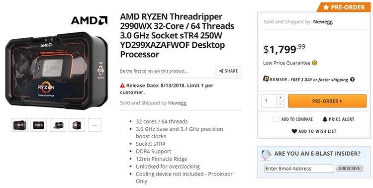 AMD открыла предзаказ на 32-ядерный Ryzen Threadripper 2990WX