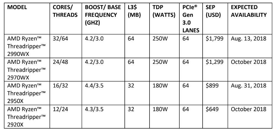 Инженеры AMD отмечают, что новые процессоры не являются разумным решением для геймеров. Большинство современных игр не умеют работать с более чем двумя ядрами, а значит большая часть мощности продукта будет простаивать без дела. Покупать Ryzen Threadripper второго поколения советуют исключительно создателям контента, работающим на профессиональном уровне. Поставки 2990WX намечены на 13 августа, младшие модели отправят в продажу в октябре этого года.