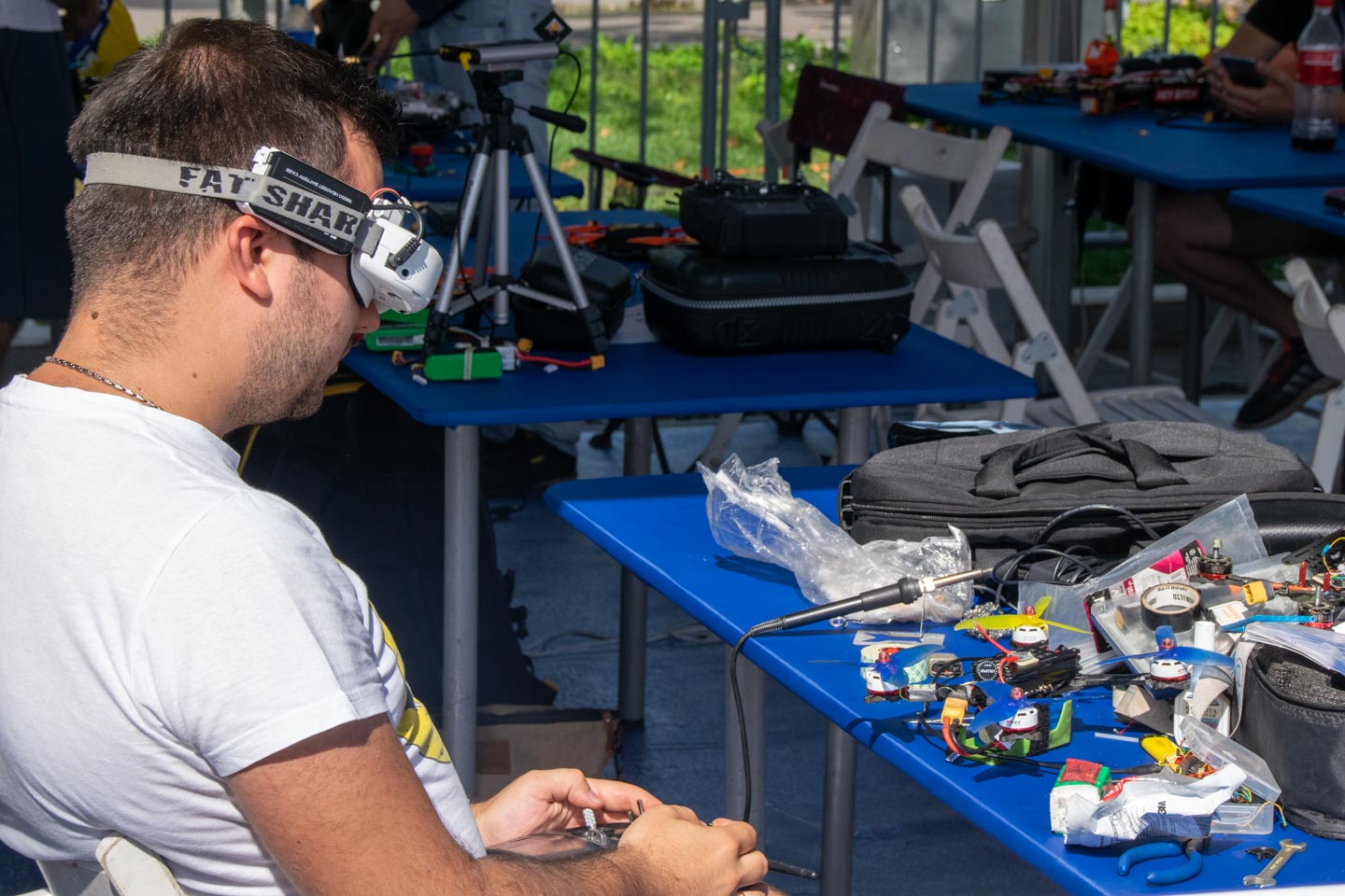 Беспилотники напичканы электроникой, без пит-стопов не обойтись. На фестивале была организована специальная закрытая зона в которой пилоты могли в спокойной обстановке отладить технику.