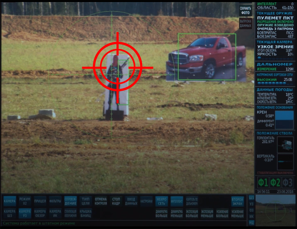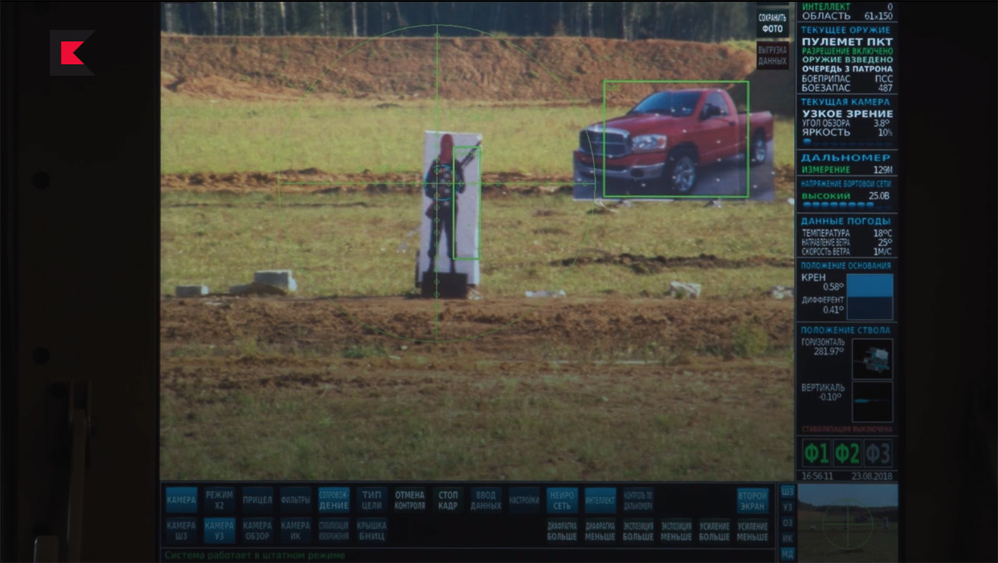 В ходе международной выставки «Армия–2018» концерн «Калашников» продемонстрировал работу автоматической станции управления оружием под управлением искусственного интеллекта. Она может как помогать оператору обнаруживать врагов, так и вести огонь по ним самостоятельно — всё благодаря умным самообучающимся алгоритмам.