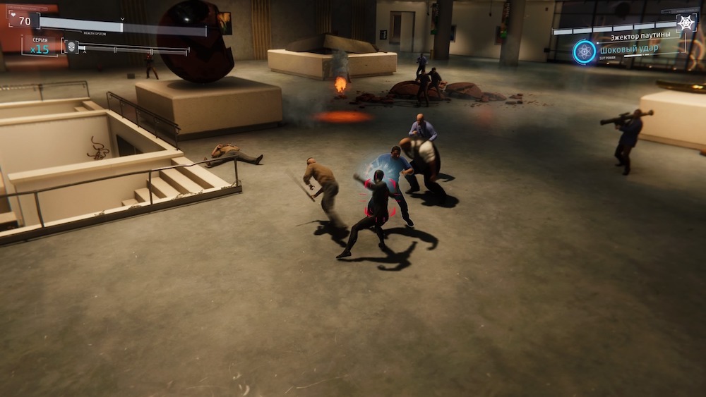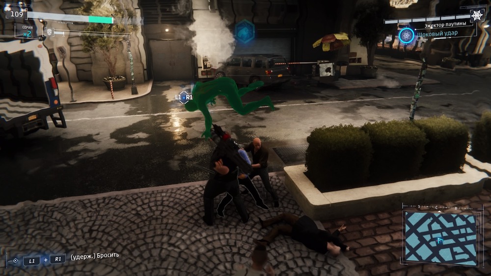 Дополнение порадовало масштабными сражениями. В основном сюжете таких крупных драк не было, как мне кажется. В первой же локации нам демонстрируют опасность гранатомётов — Человеку-пауку нужно драться с целой армией бандитов, попутно предотвращать кражу ценностей из музея и уклоняться от ракет. Зрелище весьма эффектное — буквально каждые десять секунд ракета мимо пролетает. После этого будет крупная драка на крыше, а в последней локации «Ограбления» на вас вовсе выгрузят орду вооружённых бандитов и громил с миниганами. Нового контента предостаточно, чтобы вам было чем себя занять.