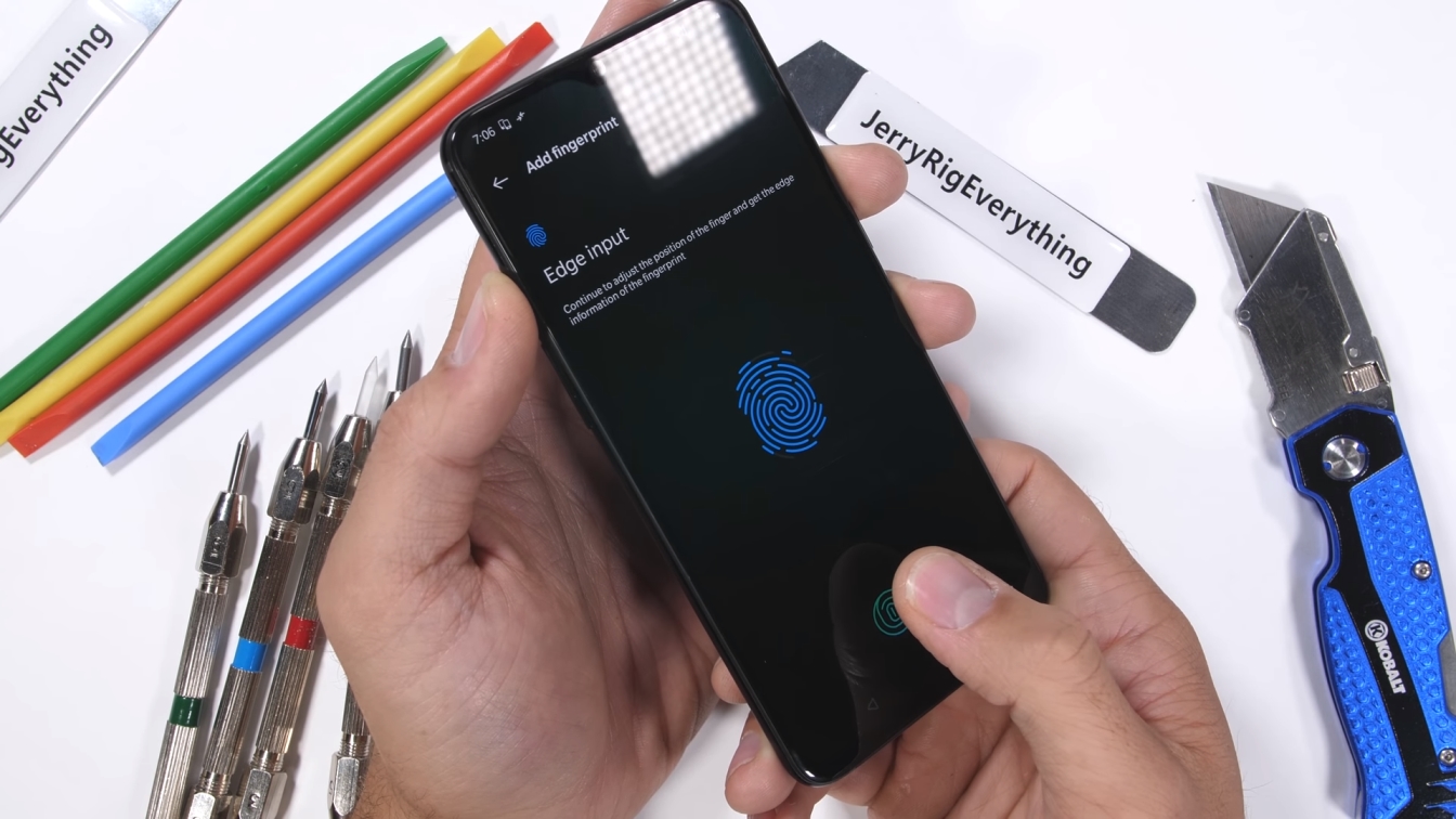 Но вернёмся к тестам на прочность. Несмотря на то, что экран аппарата защищён стеклом Gorilla Glass 6, царапины на нём появляются при использовании инструмента с шестым уровнем твёрдости по шкале Мооса. А поскольку компания оснастила смартфон наэкранным сканером отпечатков пальцев, стоит побеспокоиться. Однако JerryRigEverything утверждает, что царапины (если это конечно не глубокие борозды) никак не влияют на работу дактилоскопического датчика.