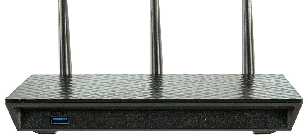 На переднем торце в левой части расположен один порт USB 3.0, который едва заметен если смотреть на роутер сверху.