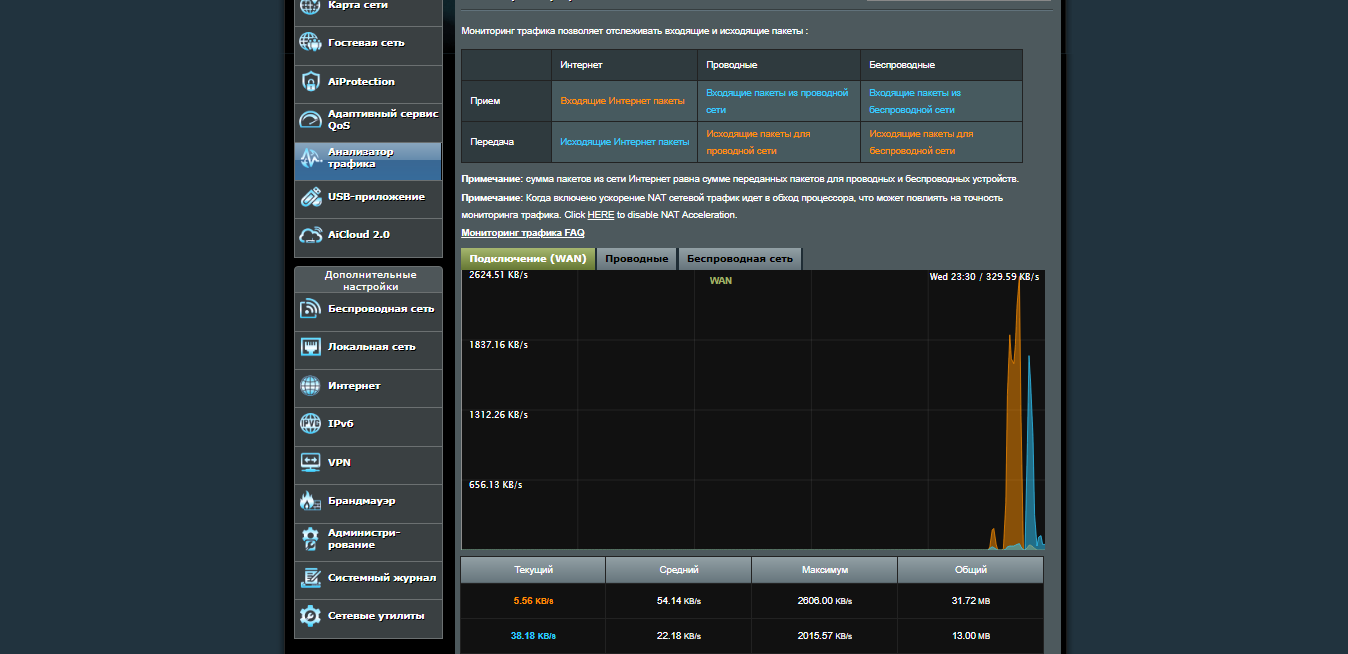 Особое внимание уделено оптимизации сети и скорости соединения. Адаптивный монитор QoS позволяет назначить приоритет для каждого подключенного устройства.