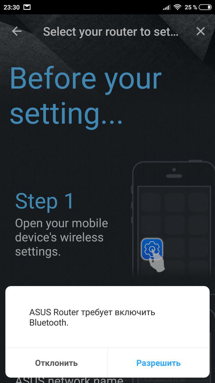 После установки и подключения к Wi-Fi сети роутера, приложение попытается автоматически найти роутер ASUS.
