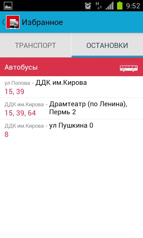 Транспорт Перми — офлайн расписание общественного транспорта г. Перми с возможностью задания избранных маршрутов и остановок. Программа сделана по аналогии с TransPot, данные берутся с сайта gptperm.ru на определенную дату и хранятся локально в телефоне.