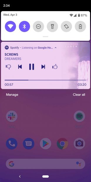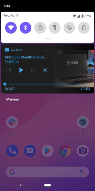 Ещё одним мелким, но полезным нововведением стало появление мини-плеера в шторке уведомлений, который активируется при запуске любых аудио- и видеозаписей. Плеер позволяет не только останавливать и запускать воспроизведение композиций или роликов, но также перематывать их и даже оценивать (но только в том случае, если разработчики конкретного приложения добавили поддержку этой функции).