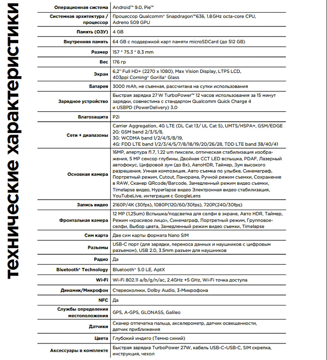 Пожалуй, своими 3000 мАч Moto G7 Plus никого не удивит: это средний показатель для современных смартфонов. Зато благодаря фирменной технологии быстрой зарядки TurboPower 27Вт аппарат можно зарядить на 12 часов работы всего за 15 минут. И никаких бдений у розетки!