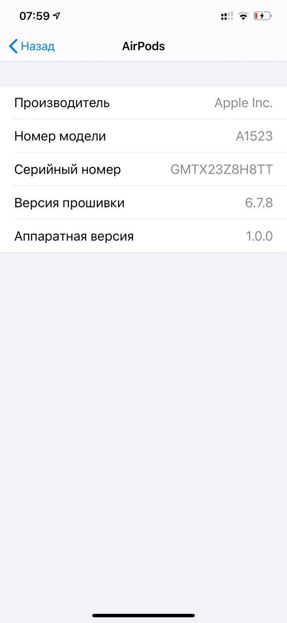 И хотя вы не можете загрузить обновление вручную, вы можете проверить какая версия ПО стоит на данный момент на ваших AirPods, а помимо этого узнать дополнительную информацию о гарнитуре. Делается это следующим образом: