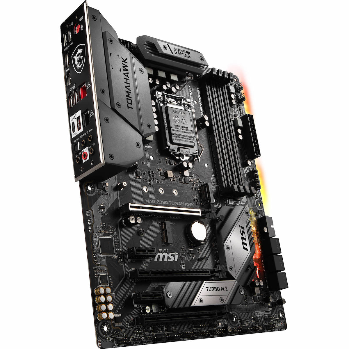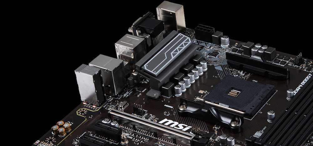 В качестве материнской платы выступит модель MSI MAG Z390 TOMAHAWK. Во-первых, это достаточно красивая плата, что немаловажно при сборке действительно дорогого компьютера. Во-вторых, нам обязательно нужен Z-писет с индексом 390, чтобы не морочить голову с BIOS. И, в-третьих, у данной платы имеется радиатор для твердотельного накопителя формата M.2, что нам очень пригодится буквально через пару абзацев. Кроме того, у MSI достаточно качественная сборка материнских плат, так что проблем MSI MAG Z390 TOMAHAWK точно не возникнет. Более доступные модели стоят буквально на тысячу-полторы дешевле, но лишены как минимум одного из этих бонусов.
