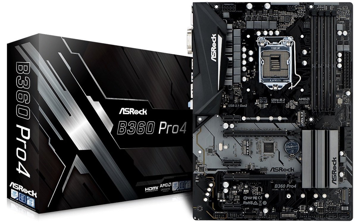Ставить наш мощнейший процессор мы будем в материнскую плату ASRock B360 Pro4. У неё, помимо привлекательного чёрного текстолита, имеется приличный набор портов и, что самое важное, чипсет B360. Стоит отметить, что материнские платы на B-чипсете с индексом 3** стоят заметно дешевле, чем Z-чипсеты, но если наш процессор и так не поддерживает разгон по множителю, то зачем переплачивать за ненужные возможности. ASRock B360 Pro4 — добротная плата с отличным качеством сборки, возможностей которой хватит даже самому привередливому геймеру. Модель, кстати, форм-фактора ATX, это нужно учитывать при подборе корпуса.