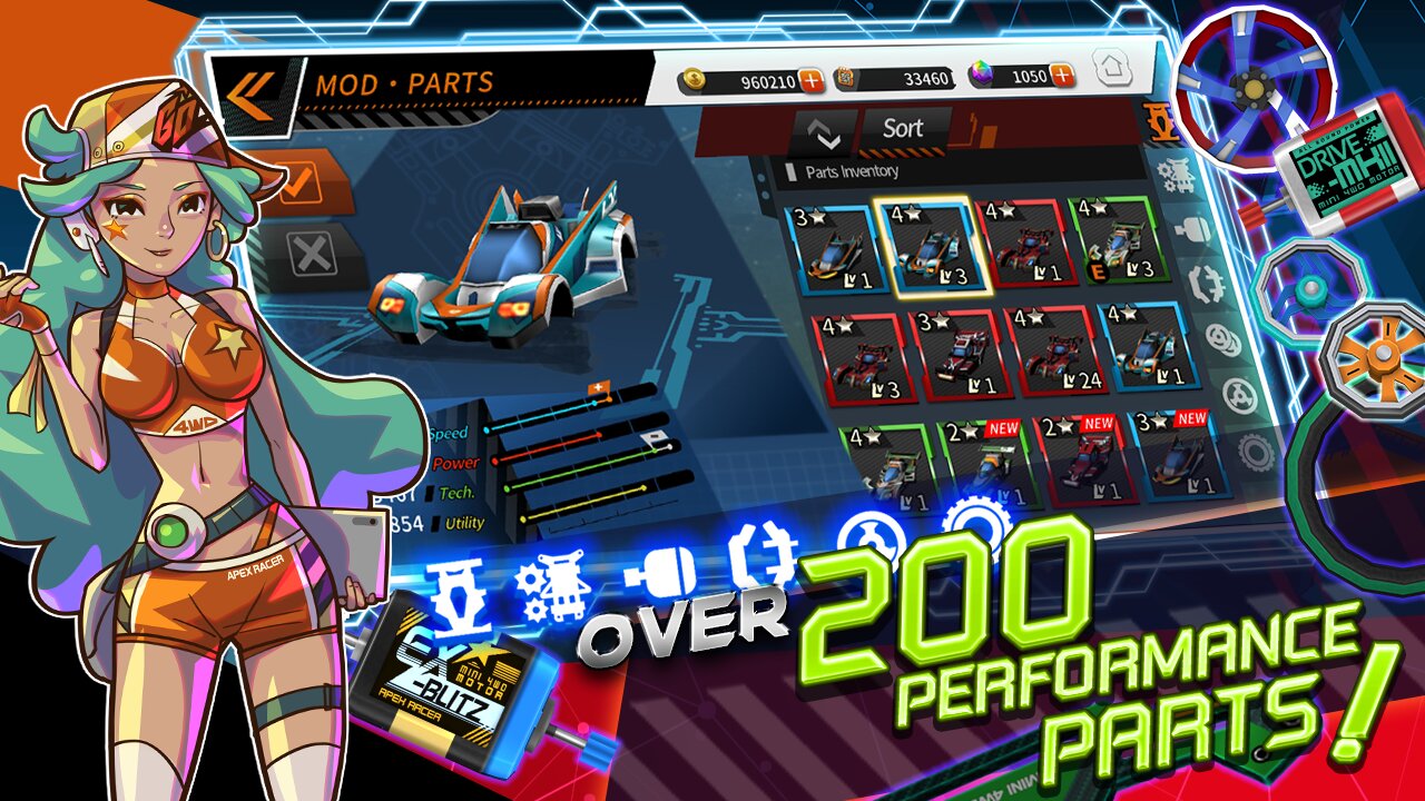В игре APEX Racer вам предстоит принимать участие в соревнованиях. Вы сами сможете усовершенствовать свой автомобиль, чтобы сделать его более манёвренным и скоростным. В вашем распоряжении около 200 различных деталей и свыше 1 миллиона всевозможных комбинаций. Теперь вы сможете наслаждаться этой динамичной игрой в своём смартфоне или планшете.
