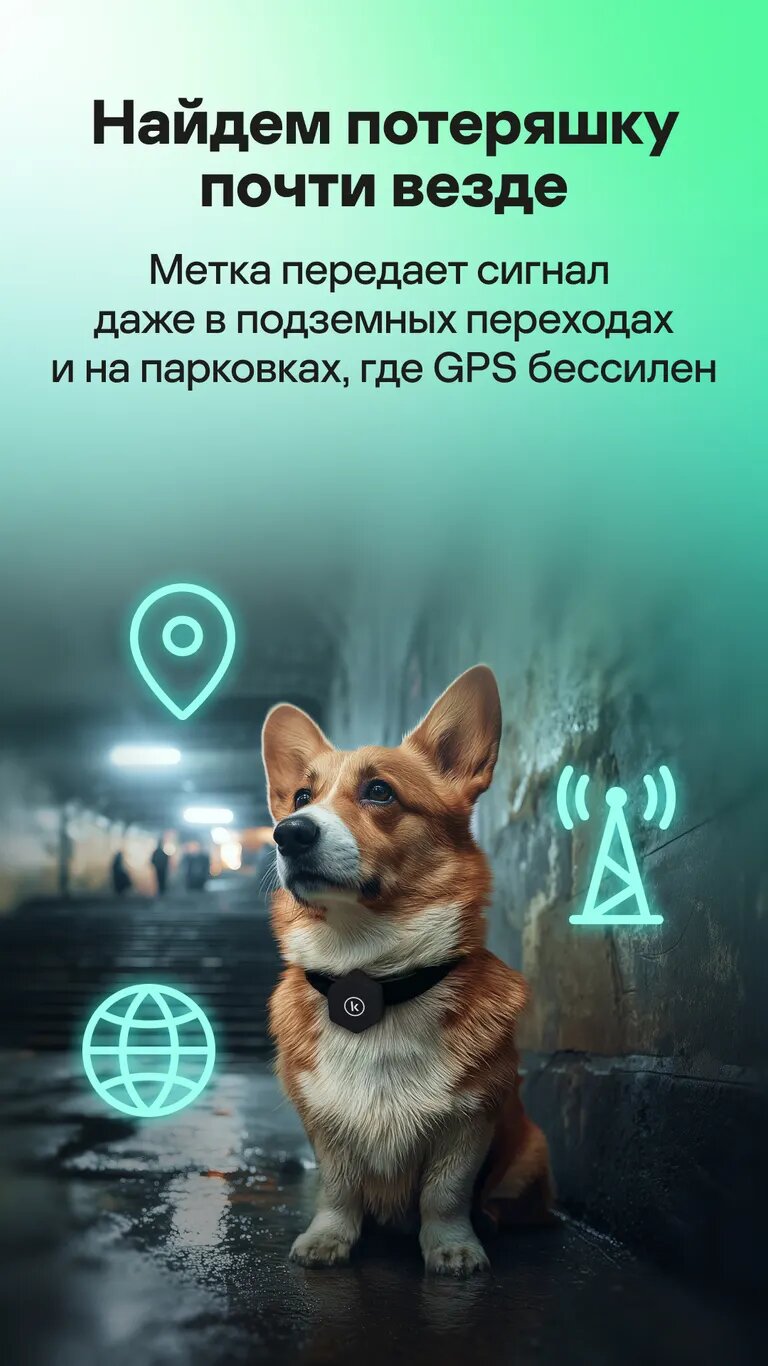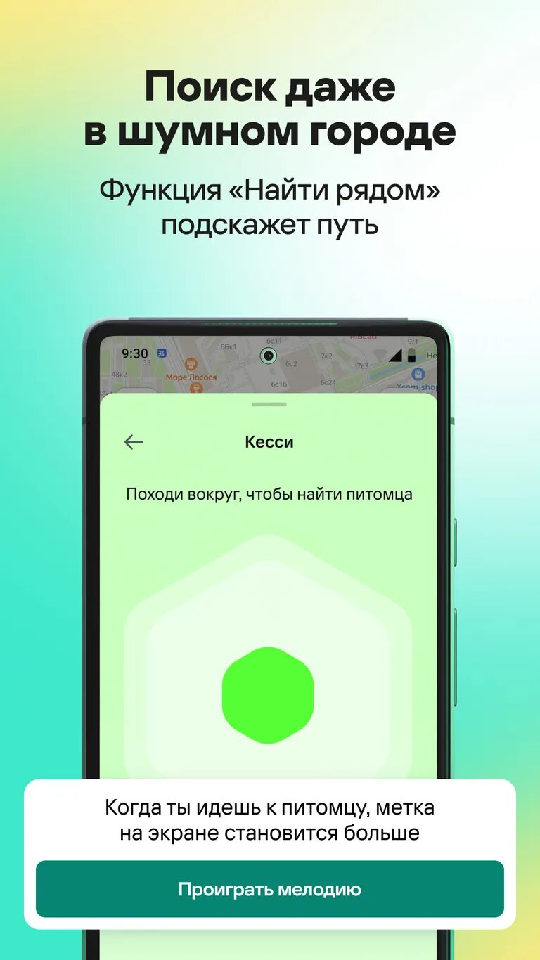 • Функция «Найти рядом»: найди своего питомца даже в шумном городе по силе сигнала – анимация в приложении подскажет, в правильном ли направлении ты идешь.