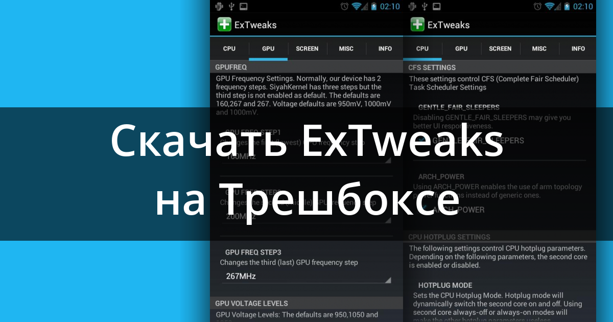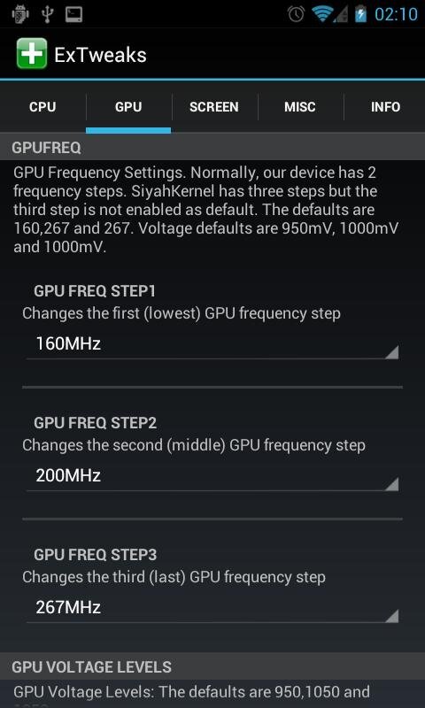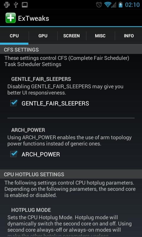 ExTweaks for Samsung Galaxy S2 (Syiah kernel) — универсальный интерфейс для конфигурирования ядра Siyah 2.6.13 -2.6.14.