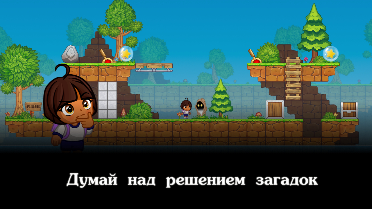 Используйте рычаги для активации платформ, двигайте ящики чтобы пройти ловушки в этих приключениях и играх на логику и смекалку. Изменяйте внешний вид Даши покупая ей красивые костюмы и различные рюкзаки.