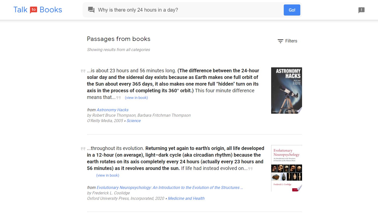 Google Books. Благодаря этому сервису вы можете задать любой вопрос (только на английском), после чего вам ответят цитатами из самых разных книг. Иногда попадается что-то интересное и необычное. Кроме того, если вы любитель литературы, то может быть вы сможете найти тут новые книги для чтения.