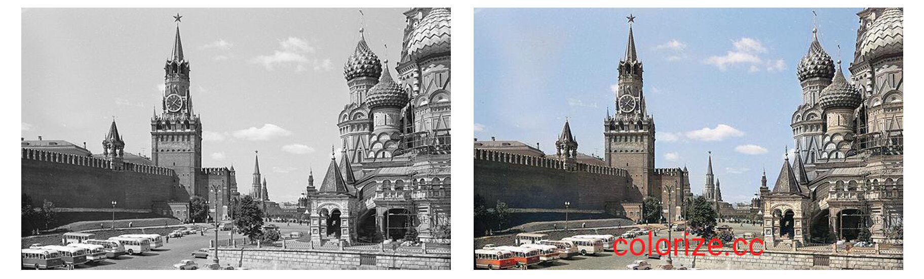 Из черно-белого фото в цветное. Данный сервис разукрашивает фотографии и видео, наложив сверху свою вотермарку; а также он может восстановить фото (убрать шум, восстановить лицо).