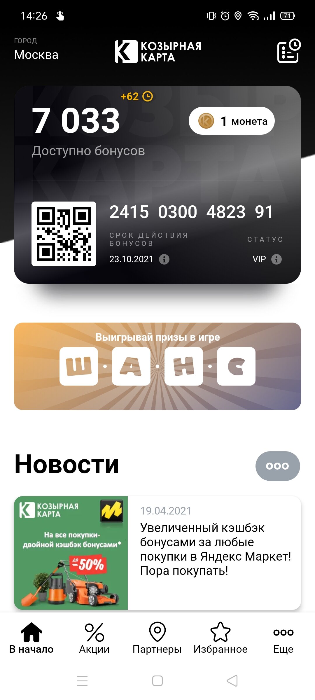 Если вы частно думаете: как сэкономить на покупках, где выгодно покупать, где найти скидки, где найти акции, как получать кэшбэк с покупок — скачивайте приложение «Козырная Карта» и получайте удовольствие от покупок!