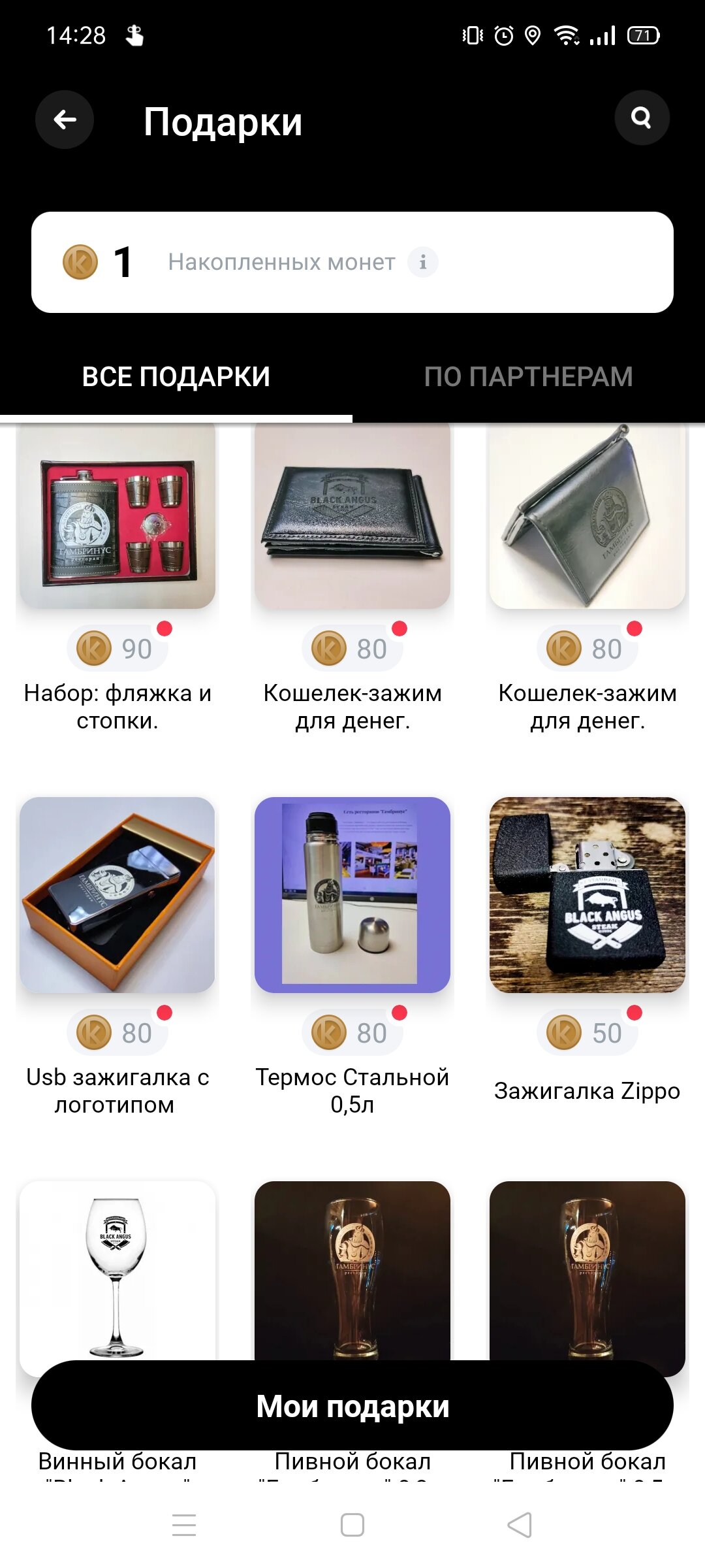 Так же в приложении размещаются дополнительные купоны на скидку, игры, подарки за монеты (вторая валюта в приложении).