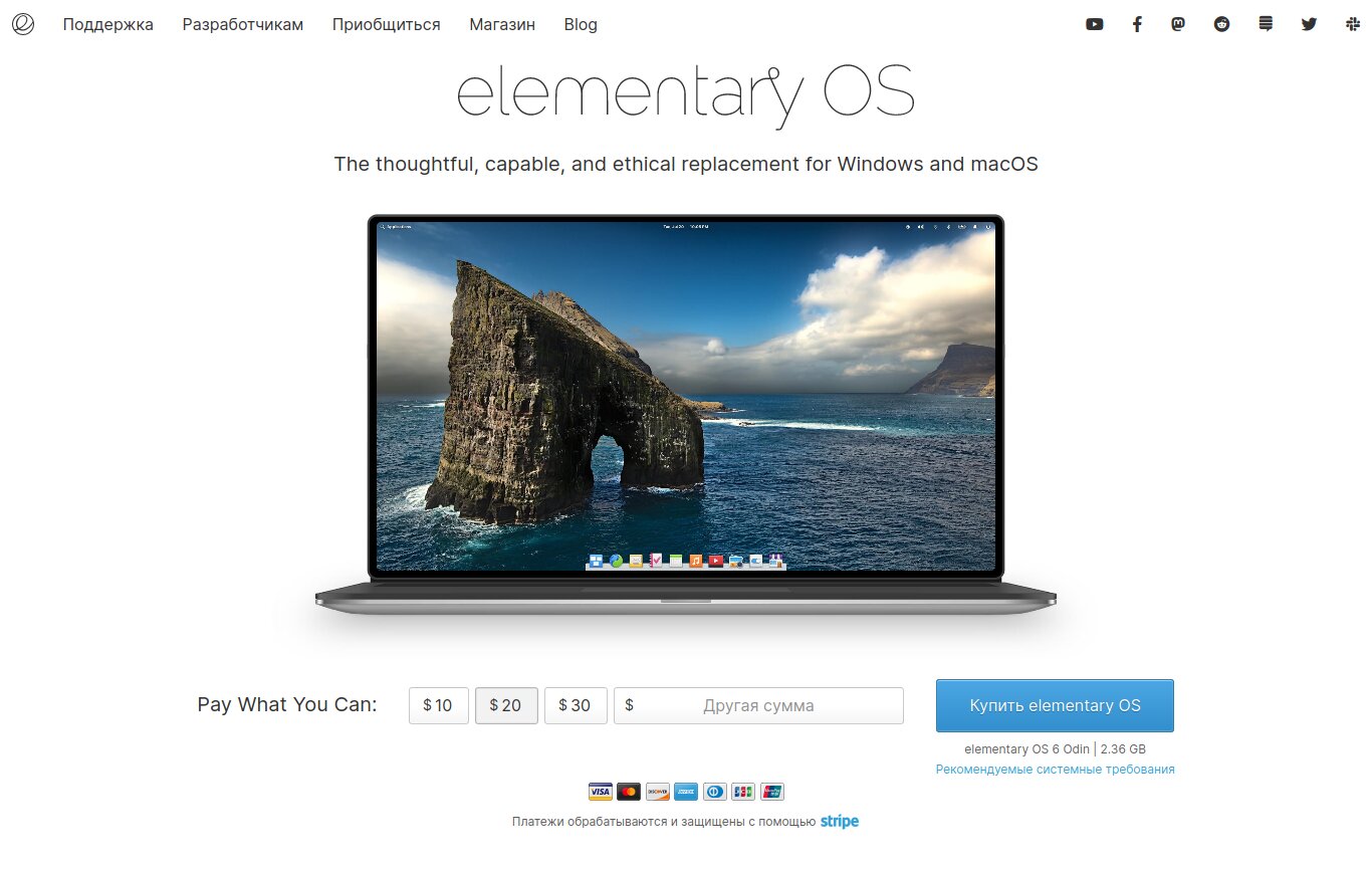elementary OS распространяется по принципу «платите, сколько сможете». Разработчики предлагают пользователям самим выбирать стоимость загрузки образа. Дистрибутив можно скачать и бесплатно, для этого нужно выбрать «Другую сумму», набрать в поле $0 и нажать «Загрузить elementary OS».