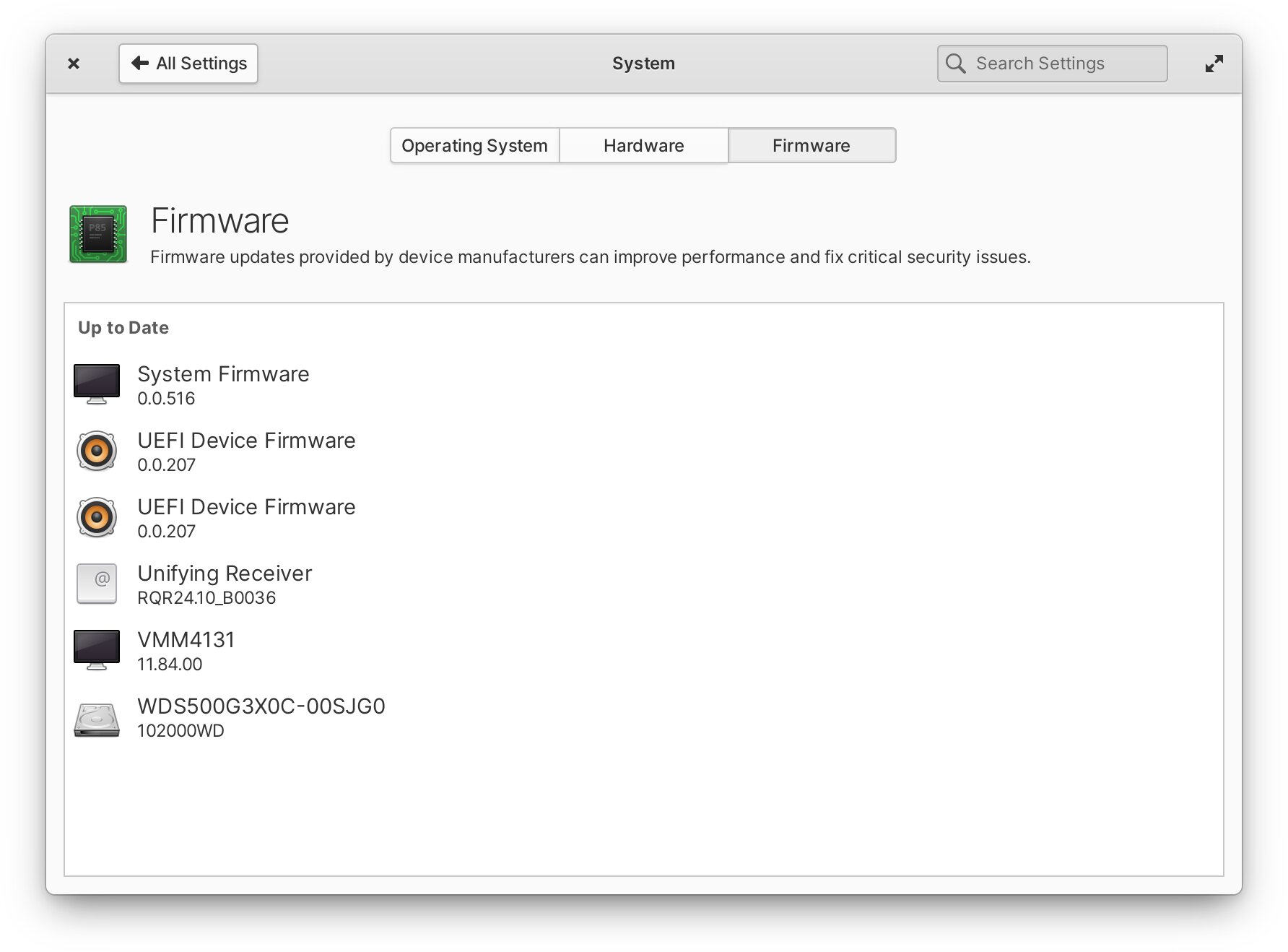 Раздел параметров «О системе» тоже изменился, теперь он называется просто «Система» и отвечает не только за отображение информации об операционной системе и технических характеристиках: во вкладке «Прошивка» можно обновить прошивку компонентов компьютера.