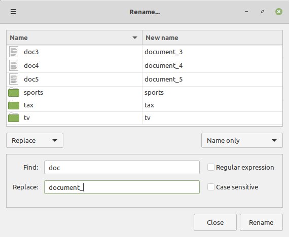 В состав дистрибутива добавлено новое приложение Bulky для группового переименования файлов. Его можно запустить из меню приложений или из файлового менеджера, выделив несколько файлов и нажав «Переименовать…» в контекстном меню.