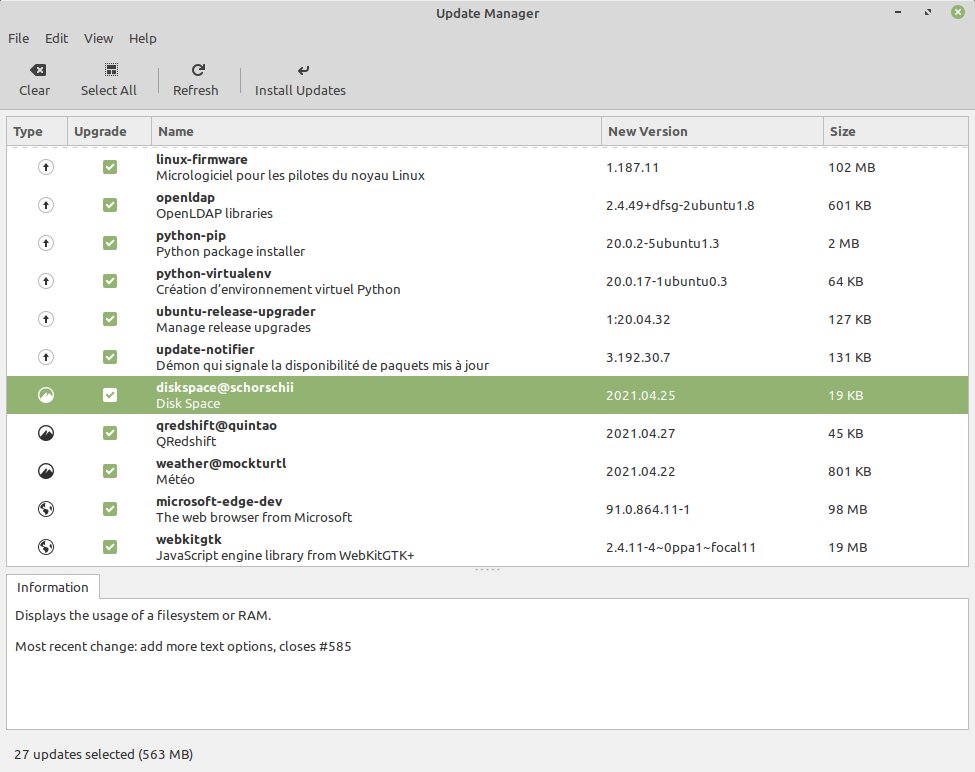 Менеджер обновлений научился проверять и устанавливать обновления «специй», дополнений к Cinnamon, в том числе и автоматически.