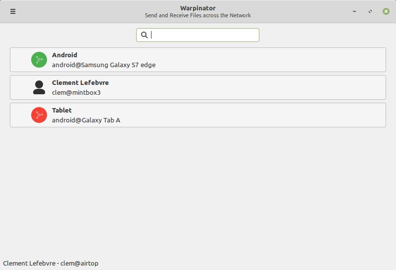 В Warpinator, приложение для обмена файлами между устройствами, добавлены возможность выбора сети (беспроводная или Ethernet) и опциональное сжатие. При включённом сжатии на обоих устройствах скорость передачи может увеличиться до 3 раз. Для Android имеется неофициальный порт.