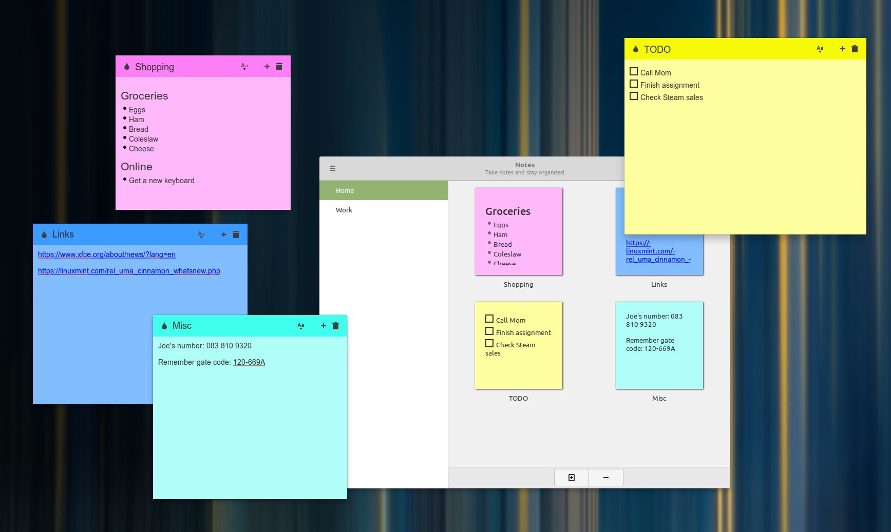 GNote, приложение для создания заметок, было заменено на собственное Sticky Notes, которое также написано на GTK3 и поддерживает HiDPI, но при этом имеет возможность выноса заметок на рабочий стол и форматирования текста. Кроме этого, Sticky Notes имеет резервное копирование и может импортировать заметки из GNote.